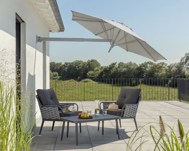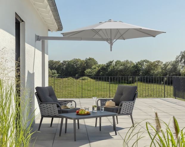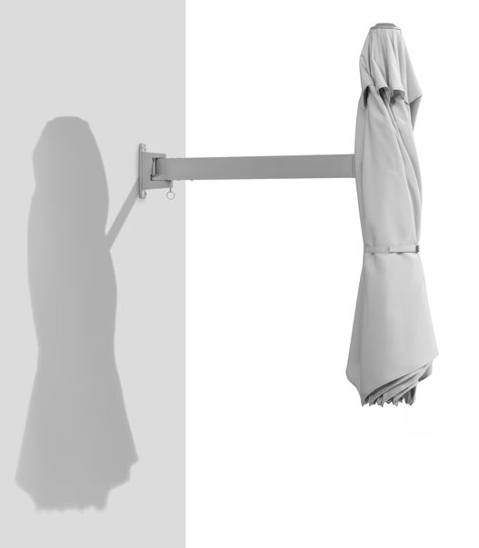 Der Wandschirm Muro bietet einen effektiven Schutz für sonnige Tage. Ausgestattet mit einer Bespannung, die einen UV-Schutz von 50+ gewährleistet, schützt er zuverlässig vor schädlichen Sonnenstrahlen. Das robuste Gestell ist um 180° schwenkbar und lässt sich in neun Positionen arretieren. Der ausziehbare Ausleger und der integrierte Knickmechanismus ermöglichen eine flexible Anpassung des Schattens. An der Wand montiert, sorgt der Schirm für eine angenehme Beschattung, ohne den Genuss von sonnigen Stunden zu beeinträchtigen.